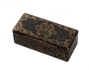Tabatière en argent niellé et vermeil. Moscou, vers 1850. 10 x 4,3 x 3,4 cm. ◊ MO : Д.А.П ◊ essayeur : Н•А ◊ Moscou ◊ 84 Табакерка. Москва, ок.1850. Серебро, позолота, черенение, 10 х 4,3 х...