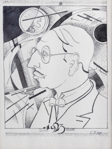 Sergueï Tchekhonine. Portrait du compositeur Igor Stravinsky. 1923. Encre sur papier (quelques traits de crayon), 25 x 19 cm à la vue. Monogrammé et daté en bas à droite. Sous passe-partout, dans un cadre vitré des années 1930. Esquisse pour...