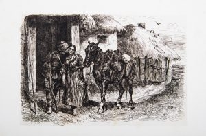 Elisabeth Krasnouchkina. Album de gravures (eaux-fortes), principalement sur le thème des chevaux. Russie, vers 1885. Un album in-4°, demi chagrin marron, dos lisse. Reliure de l’époque. Contient : 23 planches regroupant 27 compositions...