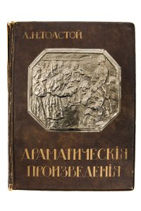 Léon Tolstoï. (Œuvres dramatiques). Moscou, Sytine, 1914. Un volume in-4°, toile peinte marron, titre à l’or, plaque illustrée en galvanoplastie sur le premier plat. Nombreuses reproductions de scènes jouées au Théâtre Khoudojestvenny, à...