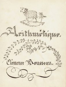 Rédigé vers 1880, ce cahier manuscrit in-8° carré (18,5 x 23 ccm.), toile granité noire, plat monogrammé « C.R. », d’environ 300 pages avec Tables des Matières, semble avoir été réalisé par une maîtresse d’école et contient plus d’un millier d’exercices classés. Bon exemplaire d’une belle écriture. Portrait présumé de l’auteur collé en tête.
