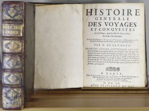 2 volumes in-4° de [14 ff.-776 pp.- 12 ff.] & [12 ff.-784 pp.- 14 ff.] en rel. d’ép. plein veau, dos à nerfs orné, avec restaurations. Première édition française de cette histoire de l’Amérique, en deux décades. Une troisième décade sera publiée par la veuve de Nicolas Coste, 11 ans plus tard, en 1671. Réf. : Boucher de la Richarderie : "L’ouvrage d’Herrera est précieux : c’est l’histoire de la découverte et de la conquête de l’Amérique espagnole la plus détaillée que nous ayons.", Brunet III-132, Sabin 31549.Ex-libris mns : " Jean Charles du Cauzé de Nazelle "- natif Caudecoste en Agenois, il s’enrôle comme mousquetaire du Roi et déjoue le complot contre Louis XIV, ourdi par le Chevalier de Rohan, le sieur de Latréaumont et la marquise de Villars