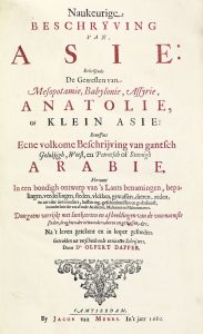 DAPPER Olfert - Naukeurige beschryving van Asie : behelsende de gewesten van Mesopotamie, Babylonie, Assyrie, Anatolie, of Klein Asie : benessens eene volkome Beschrijving vn gantsch glukkig, woest en Petreesch of steenigh Arabie…Amsterdam, Jacob...