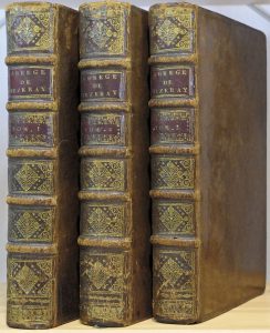 3 vol. in-4° en rel. d’époque plein veau brun, dos à nerfs orné. Édition illustrée des 62 portraits des Rois de France dans des encadrements allégoriques, seuls les 4 premiers ont été laissés en blanc, car l’on n’a aucune représentation de ces 4 premiers rois.