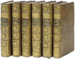 Nouvelle édition augmentée de LXXX nouvelles lettres, de quantité de remarques…La Haye, P. Paupie 1741, 6 volumes in-12 rel. plein veau, dos à nerfs très ornés, une coiffe usée, sinon bons exemplaires. Frontispice dessiné et gravé par J. V. Schley. Réf. : Barbier II-1227 f.