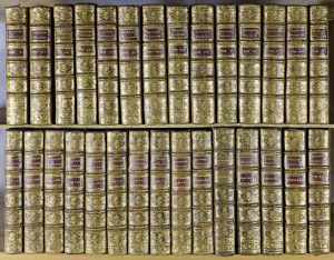 29/30 vol in-12 (mq. le vol. 26) reliés d’époque plein veau, dos à nerfs et caissons fleuronnés, pièces de titre et tomaison rouge. Bons ex. Le tome XXX et dernier contient la table générale et « L’Histoire des Flibustiers ».
