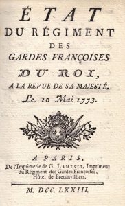 Militaria - ÉTAT DU RÉGIMENT DES GARDES FRANÇOISES DU ROI, à la revue de Sa Majesté, le 10 mai 1773 P., imprimerie de G. Lamesle, 1773.