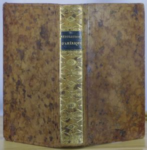 In-12 de 452 pp.- 2ff. en reliure d’ép. pleine basane marbrée, dos lisse orné avec pièce de titre verte - les 3 premiers et les 4 derniers ff. déchirés sans manque. Édition originale. Un des premiers écrits de Paul-Ulric Dubuisson (1746-1794), futur dramaturge et librettiste après avoir été directeur général de la poste royale à Saint-Domingue. A la fin de l’ouvrage, pp. 433-450, on trouve le texte complet du « Traité d’amitié et de commerce conclu entre le roi & les États-Unis de l’Amérique septentrionale », le 6 février 1778, dont l’un des cosignataires est Benjamin Franklin. Réf. : Sabin I-21037.