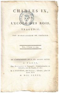 CHÉNIER (Marie-Joseph de) - Charles IX, ou l’école des Rois, tragédie…P., Didot jeune imp., chez Bossange & Nantes, chez Louis, 1780,