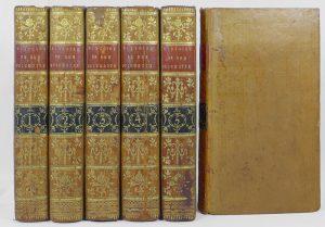 6 vol. in-12 ornés de 28 (chiffrées de 1 à 28) gravures hors texte de Saint-Aubin. Rel. d’époque pleine basane blonde, dos lisse orné, pièce de titre et tomaison rouge et verte. Ex-libris armorié de Lord St-John avec la devise des Saint-John : « Data Fata Secutus ». Réf. : Brunet I-1751 : « la traduction est de Filleau de Saint-Martin ».