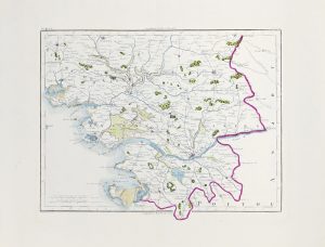 carte in-f° à grandes marges de 42,5 x 62,5 cm., (35 x 45 cm.) à la cuvette. Tirage sur Vergé bleuté en coloris d’époque. Bon ex. Réf. : Gaudillat « C.A.B. 1582-1800 », pl. 55 & 55bis : Troisième état de l’Atlas de Mentelle & Chanlaire tiré sur papier bleuté.