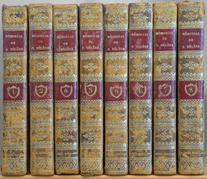 8 vol. in-8° reliés pleine basane, dos lisse orné (reliures frottées, coins émoussés) ; complet du tableau du tracé de Longwood et des 2 cartes dépliantes dont celle de l’île de Sainte-Hélène. Édition originale.