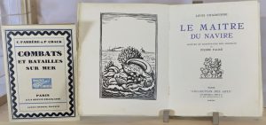 grand in-8° carré br., couverture rempliée. Tirage limité à 365 exemplaires, celui-ci sur vergé de Rives. On y joint : FARRÈRE Claude & CHACK Paul - Combats et Batailles sur Mer (Septembre 1914 - Décembre 1914). Orné d’eaux-fortes de Charles FOUQUERAY. P., Rieder « Le Paon Blanc », in-8° br., couv. imprimée rempliée illustré d’eaux-fortes avec remarques. Ex. num. sur vélin Viladon.