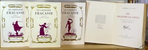 in-8° br., couv. illustrée rempliée, étui. Ex. nominatif hors commerce num. sur japon Impérial (n° V) avec une suite en noir des illustrations. On joint : GAUTIER Théophile - Le Capitaine Fracasse. Illustré d’aquarelles originales de Jacques TOUCHET, P., Paul Cotinaud édit. du Rameau d’Or, s.d., 3 vol. in-8° br., couv. rempliée. Ex. non justifié sur vélin Hermine de Docelles.