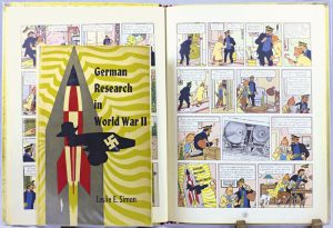 album in-4° dos de percale rouge, 4e plat B 28. Bon exemplaire auquel on joint l’ouvrage de Leslie E. SIMON : « German research in World War II » dont la couverture est reproduite page 28 de l’album et qui mets Tintin et le Capitaine Haddock sur la piste des recherches du professeur Tournesol. Description : SIMON (Leslie E.) - German research in World War II. New York, John Wiley & Sons 1947, in-8° de 218 pp. avec de nombreuses photographies, en reliure éditeur sous jaquette illustrée. L’exemplaire que nous proposons est l’édition originale de 1947, avec sa jaquette en parfait état. Rare