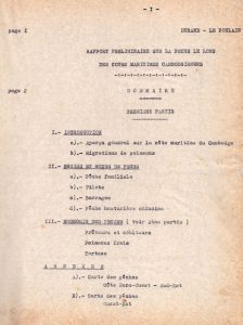 DURAND & LE POULAIN - Rapport préliminaire sur la pêche le long des côtes maritimes cambodgiennes. Observations sur le rapport préliminaire…