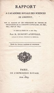 DUMONT d’URVILLE Jules - Rapport à l’Académie Royale des Sciences de l’Institut sur la marche et les opérations du voyage de découvertes de la corvette ‘L’Astrolabe’, en 1826, 1827, 1828 et 1829. P., Imprimerie Royale, juin 1829,