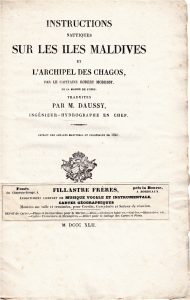 MORESBY Robert - Instructions nautiques sur les Îles MALDIVES et l’Archipel des CHAGOS, par le Capitaine Robert Moresby de la marine de l’Inde. Traduites par M. Daussy ingénieur-hydrographe en chef. P., Imprimerie Royale 1842, avec titre de...