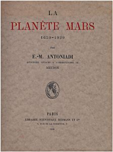 ANTONIADI (Eugène-M.) - La planète Mars, 1659-1929. Étude basée sur les résultats obtenus avec la grande lunette de l’Observatoire de Meudon et exposé analytique de l’ensemble des travaux exécutés sur cet astre depuis 1659. P., Hermann &...