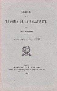 EINSTEIN Albert - L’Éther et la Théorie de la Relativité. Traduction française par Maurice Solovine. P., Gauthier-Villars 1921,
