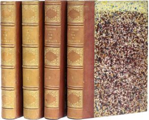 4 vol. in-4° abondamment illustrés, reliés demi-chagrin rouge, dos à nerfs et caissons ornés. Les deux premiers volumes concernent les Mammifères avec environ 1500 pp. & 758 figures, les deux suivants concernent les Oiseaux avec environ 1500 pp. & 428 figures.
