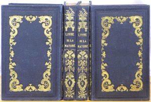 4 vol. in-12 en reliure éditeur pleine toile, dos et plats ornés de guirlandes et rinceaux or. Beaux exemplaires Cette quatrième édition voit « l’addition d’un chapitre sur la télégraphie électrique. Sujet sur lequel on a généralement que des idées très-confuses… »