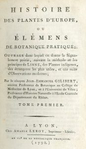 Avec 656 figures.- Botanique.- GILIBERT (Jean-Emmanuel). Histoire des plantes d'Europe, ou Élémens de botanique pratique [...]. Lyon, Amable Leroy, An VIe (1798),