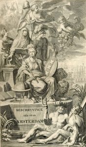 2 vol. in-folio en pagination continue, [22, dont titre-frontispice]-1223-[41(interversion de cahier] p., un plan h. t., un grand plan dépliant, 38 ill. sur double page, une ill. sur double page dépliante, 6 planches h. t., 4 planches h. t. avec 2 figures, une planche sur double page avec 2 figures, une planche h. t. avec 4 figures, 74 figures dans le texte, plein veau brun moucheté de l'époque, dos à nerfs décorés (reliures usées, mors en partie fendus ou frottés, coins abîmés, coiffe infér. du 1er vol. arasée). Bon exemplaire de ce livre remarquable par son illustration sur la ville d'Amsterdam ((Nijhoff-Van Hattum, 67 ; Van der Kellen, 223).