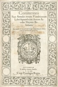 Het belangrijkste basiswerk voor de geschiedenis van Vlaanderen.- MEYERE (Jacobus de). Commentarii sive Annales rerum Flandricarum libri septemdecim. Antverpiae, In aedibus Ioannis Steelsii, 1561,