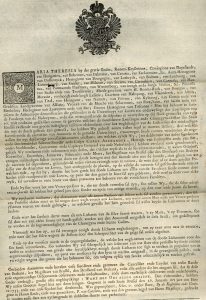 Pays-Bas autrichiens.- Condamnés à mort. Edit de l'Impératrice Marie-Thérèse du 26 janvier 1753 autorisant la Faculté de médecine de l'Université de Louvain à venir chercher le corps des condamnés à mort à Bruxelles, uniquement du mois...