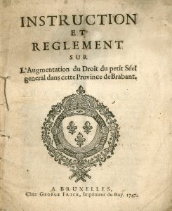 Pays-Bas autrichiens.- Occupation de Bruxelles par les armées françaises.- Instruction et reglement sur l'augmentation du droit du petit séel [sceau] général dans cette province de Brabant. Bruxelles, George Fricx, 1747,