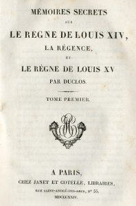 DUCLOS. Mémoires secrets sur le règne de Louis XIV, la Régence et le règne de Louis XV. P., Juanet et Cotelle, 1824,