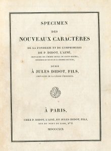 Très rare ouvrage typographique. Il s'agit d'un ensemble de poèmes rédigés par Pierre Didot (1761-1853), héritier de la déjà célèbre famille d'imprimeurs, et présentés successivement dans les différents corps du caractère Didot, en partant du plus petit (le 4 et demi) au plus gros (le 21). Créés par Didot lui-même, ces caractères venaient d'être perfectionnés sous les yeux du maître par Vibert, dans une élaboration qui occupa les années 1809 à 1819 (année de publication de notre ouvrage). Ex-dono autographe de l'auteur en regard du titre : « De la part de l'auteur ».
