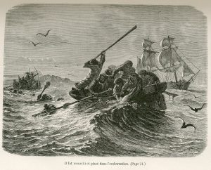 RAYNAL (F.E.). Les Naufragés ou vingt mois sur un récif des Iles Auckland. Récit authentique. Ill. de 40 gravures sur bois dessinées par A. de Neuville et accompagné d'une carte. 2e édition. P., Hachette, 1870,