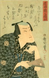 KUNICHIKA (1835-1900). Acteur kabuki en buste dans un rôle célèbre tenant dans sa main droite un éventail. Date : vers 1860.