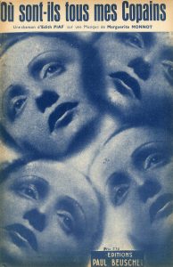 Chansons.- Ensemble de 85 partitions monochromes au format 27 x 17 cm d'Edith Piaf (54) et Damia (31). Etat divers. Bel ensemble.
