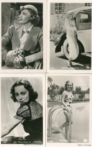Cinéma.- Ensemble de +/- 800 photos miniatures d'actrices de cinéma des années 30 à 50. Format : 7 x 4,6 cm. Marque "Ross" en bas à gauche de chaque photo.