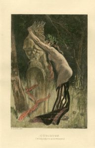 ROPS (Félicien). "Curieuse". Héliogravure en couleurs, montée sous passe-partout et cadre en bois.