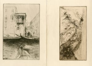 Eau-forte originale tirée sur vergé crème, telle que publiée dans la "Gazette des Beaux-Arts" le 1er juillet 1906. Dim. support : 27,5 x 19 cm ; sujet : 22 x 14 cm./ IDEM. "La Vallée fertile près de Monte Oliveto Maggiore" (1906). Eau-forte originale tirée sur vergé crème telle que publiée dans la "Gazette des Beaux-Arts" le 1er juillet 1906. Dim. support : 18,5 x 27,5 cm ; sujet : 10,7 x 21,2 cm. On joint le catalogue de l'exposition de son oeuvre illustré à la Librairie Blaizot à Paris en mai 1974./ Ens. 2 pièces.