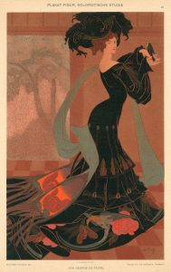 Lithographie en couleurs publiée dans "Dekorative Vorbilder". Stuttgart, Hoffmann, 1905, dim. support : 35 x 25 cm ; sujet : 28,5 x 18 cm./ ECKMANN (Otto). "Wenn der Fruehling kommt" (1895). Lithographie en couleurs telle que publiée dans le 2e volume de la revue allemande Pan. Dim. support : 36 x 28 cm ; sujet : 25,5 x 11 cm./ Ens. 2 pièces.