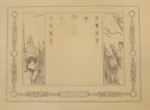 Lithographie originale en noir tirée sur vélin crème. Frontispice pour l'album réalisé à l'occasion de l'Exposition universelle de Liège en 1905. Dim. support : 40 x 57,5 cm ; sujet : 33 x 45 cm.