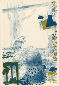 Lithographie en couleurs telle que publiée dans la "Revue blanche" en 1894, dans les mêmes tons et aux mêmes dimensions que l'originale. P., Delâtre, 1894, dim. support : 26 x 20 cm ; sujet : 25 x 16,5 cm.