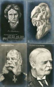 Arcimboldo.- Ensemble de 21 cartes postales représentant des portraits réalisés dans le style d'Arcimboldo : Beethoven, von Bülow, l'empereur Guillaume Ier, Bismarck, Schiller, Liszt, W. Busch, Goethe...