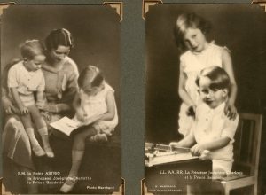 Famille royale.- Ensemble de +/- 75 cartes postales et photos originales sur la famille royale belge (Albert Ier, Léopold III, Baudouin), dans un album in-12 oblong.