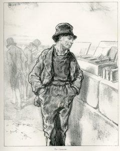 in-folio, 2 f. (faux titre et titre avec large vign. gravée), 16 p. et 10 planches ; 2 f., 16 p., 10 planches ; 2 f., 15 p., 10 planches ; 2 f., 16 p., 10 planches, reliure en toile édit. rouge, titre et auteur dorés sur le plat avant, tranches dorées (rousseurs sur les pages de texte, derniers f. lég. détachés, rel. lég. frottée). Bon ex. de cet album complet avec 4 x 10 planches lithographiques en bel état de fraîcheur, e.a. Les bouquinistes, les amoureux, les avocats et la jolie danseuse, etc.