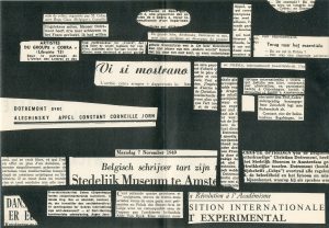 "Galerie Taptoe". Carton d'invitation mis en page par Corneille Hannoset pour l'exposition collective de Alechinsky, Appel, Baj, Jorn, Rein et Roel d'Haese, Ting, Wyckaert et Dotremont avec Cobra. Brux., Galerie Taptoe, 1956, dim. : 18,5 x 26,5 cm./ Reinhout [sic] d'Haese. Exposition. Même lieu, 1956, plaquette 8°, agrafée (piqûres éparses). Mise en page par Corneille Hannoset et photos de Serge Vandercam./ Ens. 2 pièces.