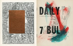 Moniteur de la Pensée Bûl et de l'Académie de Montbliart. N° 7. "Bah wet !". Comité de rédaction : André Balthazar et Pol Bury. La Louvière, Editions de Montbliart, [septembre 1958], 8°, 16 p. agrafées. Imprimé en typographie 1 couleur (noir) sur papier blanc et marron. Foisonnement typographique et collages (notamment deux pages avec un morceau de journal collé titrées : "Appartient à l'artiste" et "Collection particulière", couverture et intérieur rehaussés de traits au pastel./ IDEM. N° 9. La Louvière, Daily-Bul, 1963, plaquette 8°, agrafée. Edit. orig. Numéro consacré au Nouveau réalisme. Rédaction : André Balthazar et Pol Bury. Dessin de Maurice Henry. Ex. comportant plusieurs collages rendant chaque numéro unique. Collaborations d'Ernest Pirotte, Maurice Henry, Adelin Borzmann, Achille Chavée, Raoul Ponchot, Robert Polka, Jess Wallace, Karl Feurbach, Josette Rimbaud, Jean Plumat, Robert de Clari, Edmond Lefébure.../ Ens. 2 plaquettes.