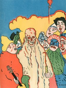 James Ensor, peintre et graveur. Texte de Bl. Rousseau, Ch. Beck, M. Elskamp, A. Fontainas, Th. Hannon, G. Lemmen, C. Lemonnier, M. Maeterlinck, O. Maus, C. Meunier, E. Picard, O. Uzanne, E. Verhaeren... Avec 111 ill. de James Ensor. P., "La Plume", 1899, 4°, 100 p., bradel demi-maroquin brun à coins, dos lisse, titre doré en long, couv. cons. (petite mouill. au bord externe du 1er plat, manque le 2e feuillet blanc de garde).