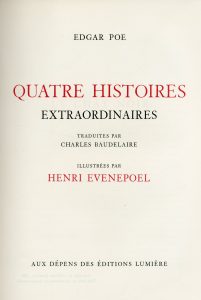 EVENEPOEL.- POE (Edgar). Quatre histoires. Trad. de Ch. Baudelaire. Illustrations de Henri Evenepoel (front. et 16 reprod. in- et h. t. en noir d'après des dessins inédits de l'artiste). Brux., Edit. Lumière, 1944