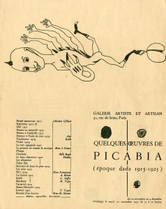 Quelques oeuvres de Picabia (époque dada 1915-1925). Exposition. P., Galerie Artiste et artisan, nov. 1951, 1 f. crème imprimé en noir de 26,6 x 21,4 cm, illustrations recto/verso.